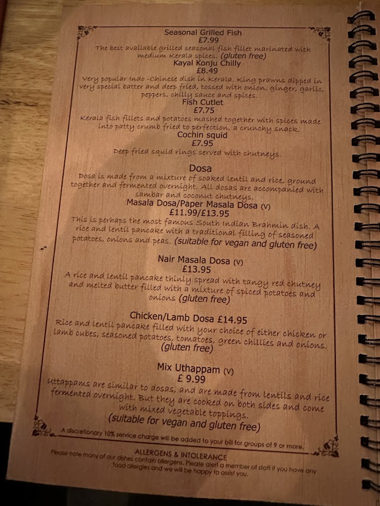 Had the authentic kayak fish curry and Kerala parota last time one of the best I had in uk and our waitress Lekshmi was really kind and helped us to order some amazing food