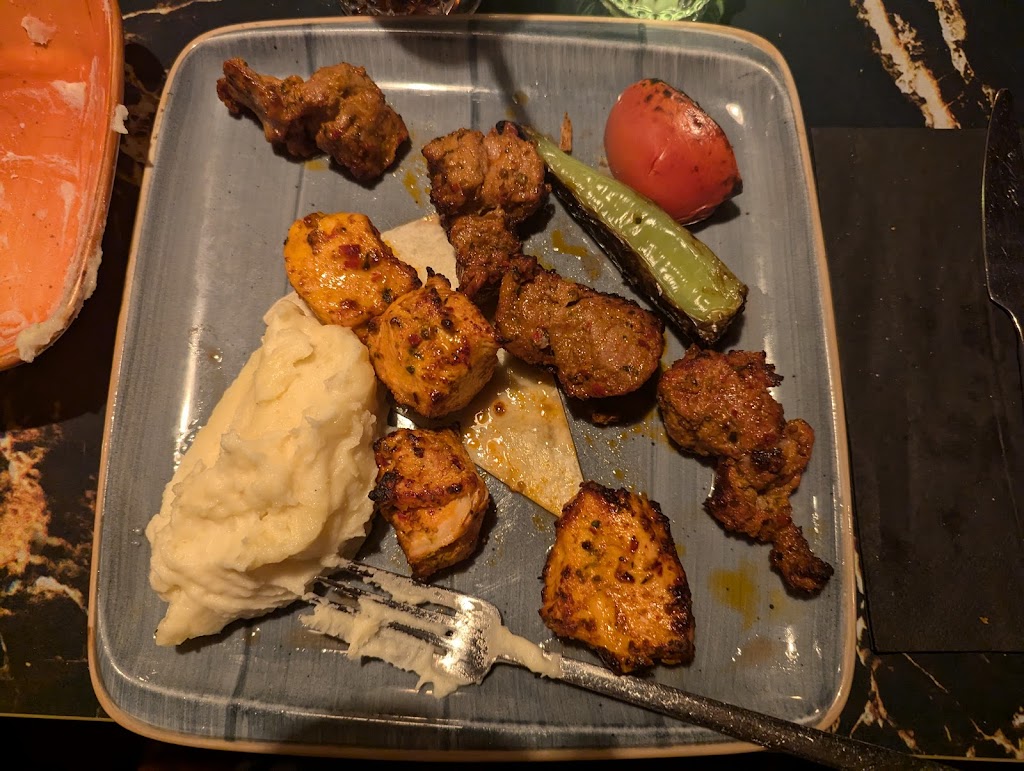 Fantastic! I absolutely loved the food and the atmosphere. A little bit expensive but it deserves that. Lamb shish, chicken shish and adana was so delicious. Baklava was really perfect except the ice cream, it was so delicious it doesnt need ice cream, I suggest that you ask for it without ice cream or let them put it separately. And surprisingly the americano was very good too. There are tables for big groups too.
