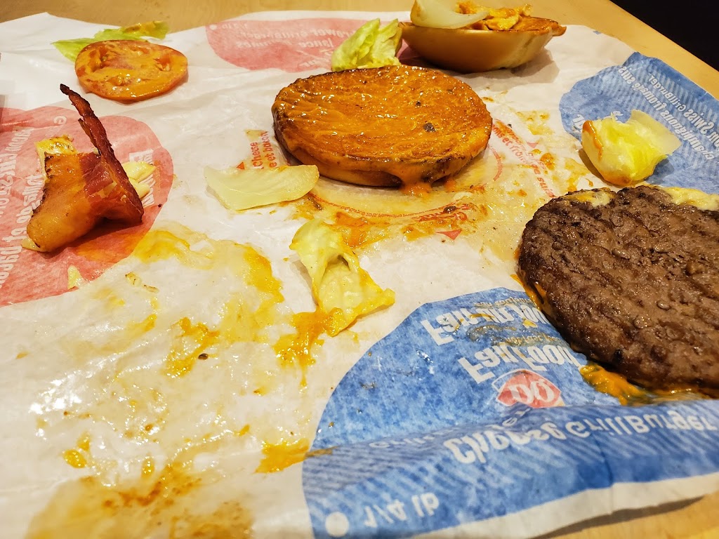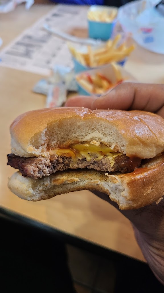 Ice machine out of ice. Had ordered a double flamethrower combo. Burger had tomatoes when I asked for no tomato and there were only a couple very small pieces of lettuce ends.The amount of onion rings I got was pretty pathetic compared to many experiences in the past, maybe 7 average sized rings all stuck together. I do not usually have any standars for fast food restaurants but it felt like a very poor effort was put in to slap my order together. Seemed very disorganized and lacking any sort of enthusiasm and/or motivation. Food tasted OK, that s what makes the 2 stars.