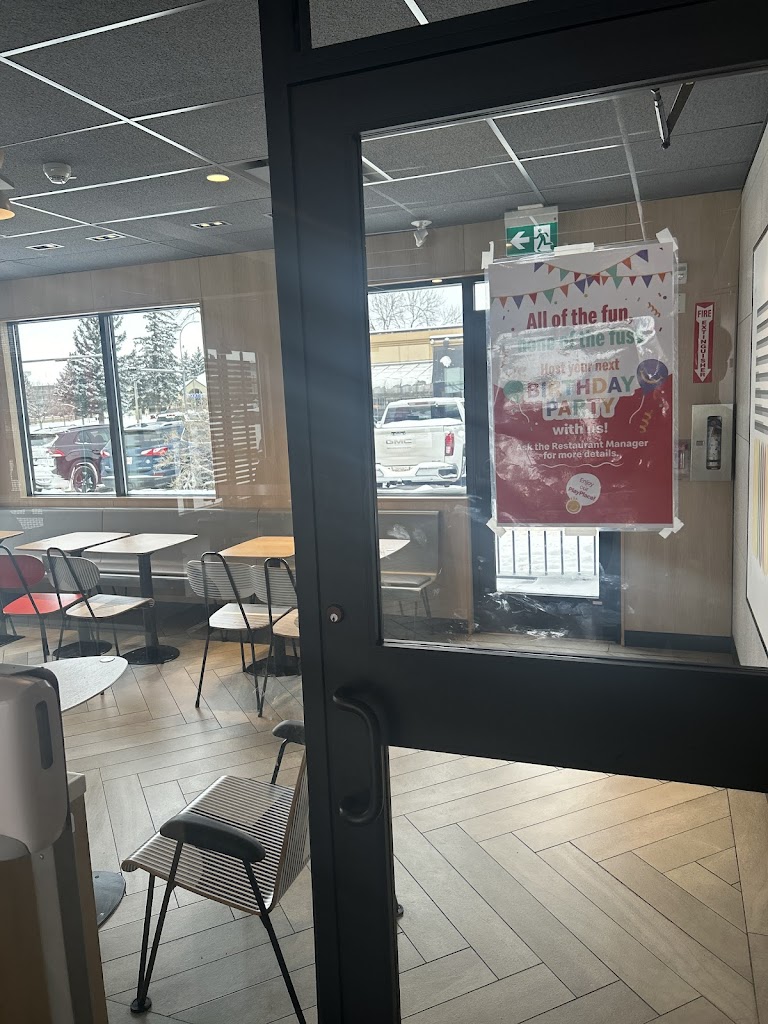 I came from out of town on a business trip. Stayed at the Days Inn across the street. Decided to go have a meal here for some monopoly pieces. Service was good and fast. Food was perfect. But it was the area of town that was scary. One guy with bumblebee pants and a lady with a blue hoodie kept coming inside bothering us, and walked around drive thru constantly wanting somebody to buy them something. Tried stealing my drink cup, then grabbed one out of the garbage and went up to the counter to get a refill. Called me a scumbag. Staff there didn’t seem to care to kick them out or call the police to get rid of them. One lady I just praise dearly!! She was with her daughter in the play zone, and gave me her monopoly pieces. I won an apple pie, and immediately went and redeemed it for them. She was shocked and very happy. Not many others I saw in that area were pleasant or clean. So watch your backs if you go there- but my order and the food were great.