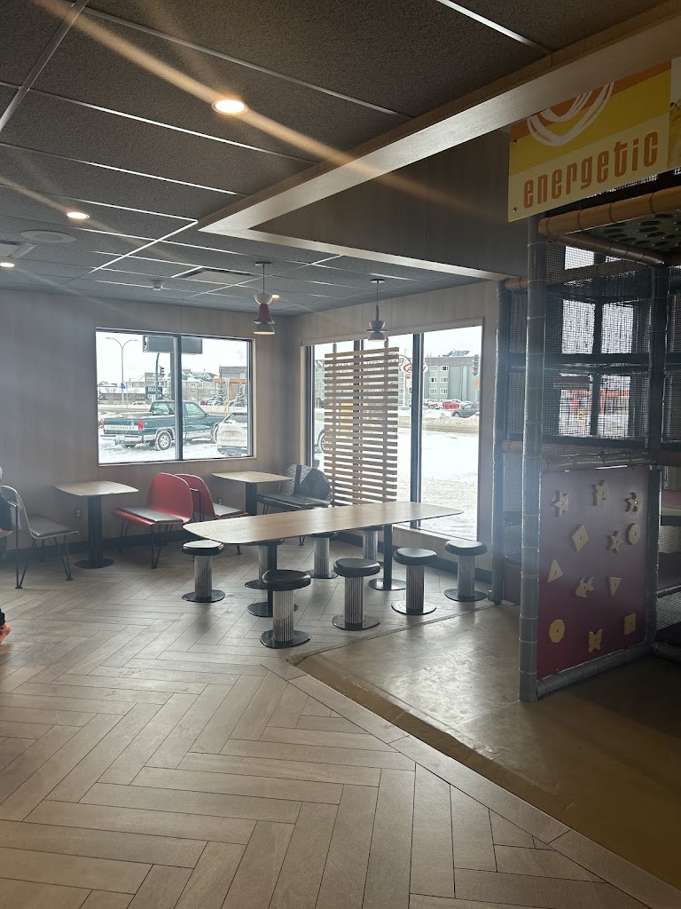 It was alright for a Lethbridge Alberta McDonalds I suppose but still below average. Parking: Lots of seating, big play center for children which looked relatively clean once again for a fast paced environment. Kid-friendliness: Once again I cant say too much as I didnt have my boys with me this round but I think they would have loved the play center and what kid doesnt love McDonalds. Large selection of treats and sweets as well. Wheelchair accessibility: Yes