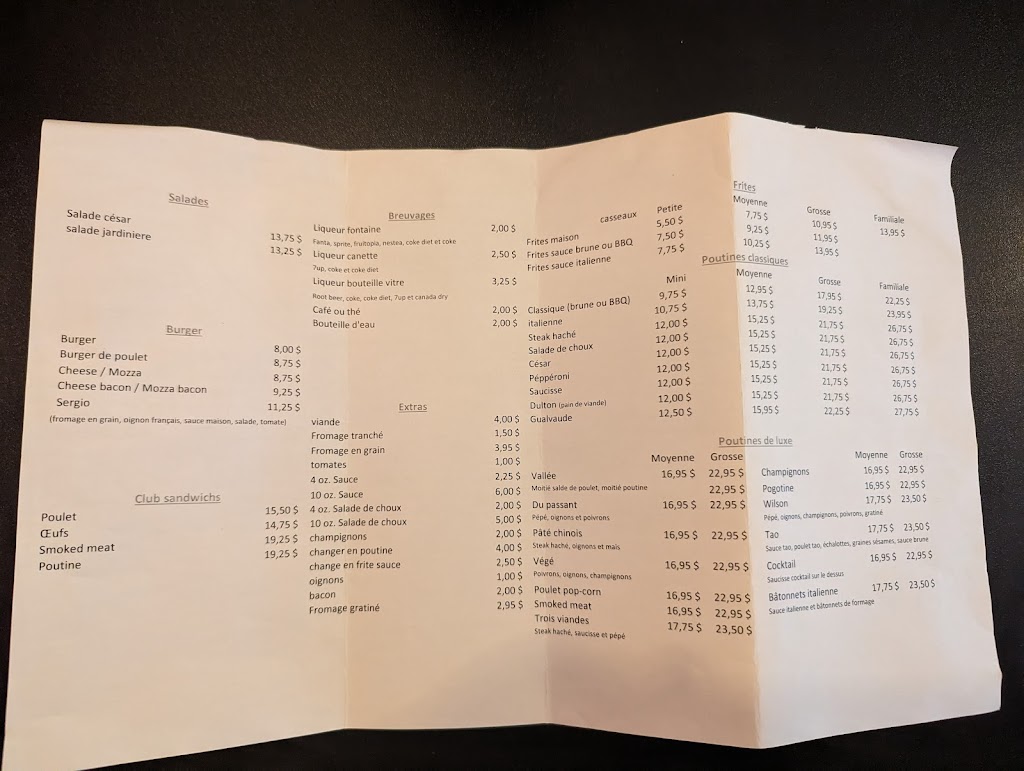 Very very good restaurant! I recommend 100% and I will definitely come back. The person at reception is delighted to be there, which is rare these days. The food, lets not even talk about it, its just excellent. I recommend the Deluxe three-meat poutine and the Sergio hamburger as a trio. The portions are generous and we even leave with surplus.