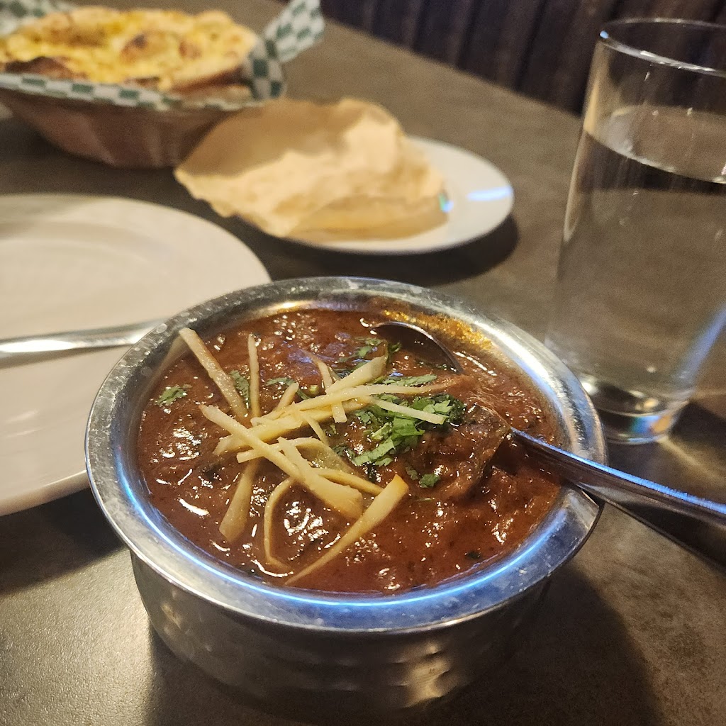 First time here, got the lunch combo special, which was decent overall :) even though the butter chicken was a bit too sweet for my taste; the naan & channa masala was very good though... The atmosphere is a bit too dark & gloomy for me personally, but wait staff is nice. Lamb curry and portion is pretty good for the price. Naan was a bit dry this time.
