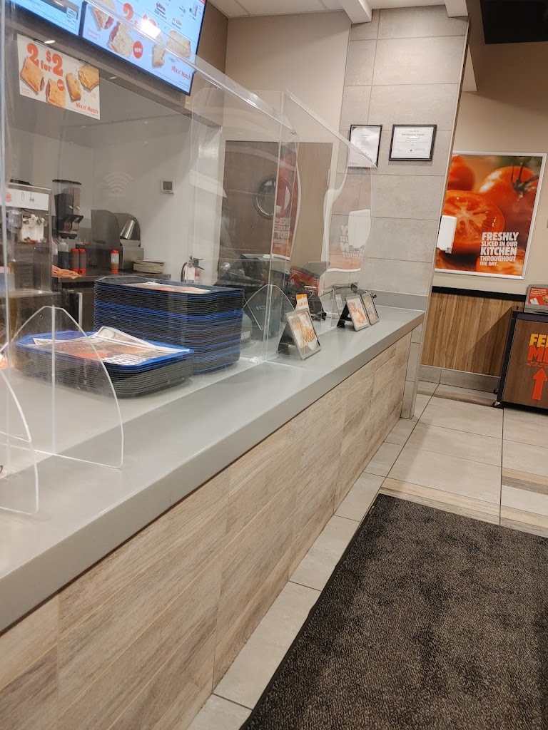Very inviting, bright and clean. Fast service, hot and fresh. Staff are quick and very friendly. Parking: Large modern strip mall location lots of parking. Wheelchair accessibility: Side walk accessible, wide doors, good clearance layout