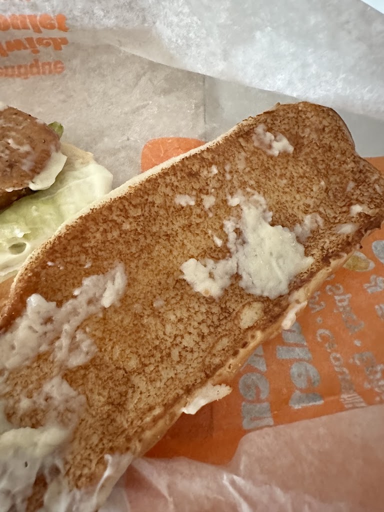 Horrible went thru drive thru and paid and then I got made to go wait for my food after I got it my ice tea was watered down and the mayo in my chicken burger is curdled and smells weird just horrible Burger King disgusting