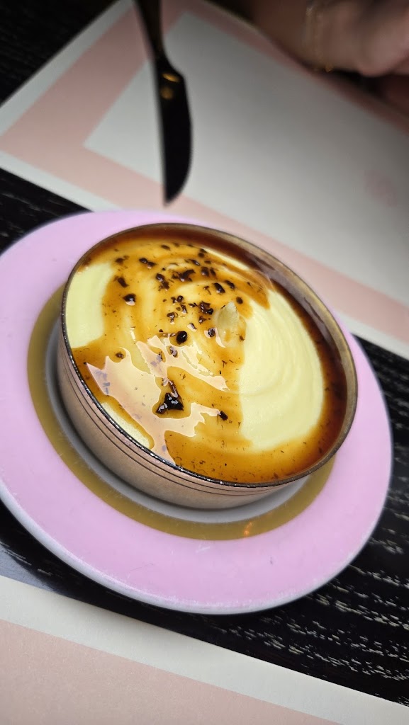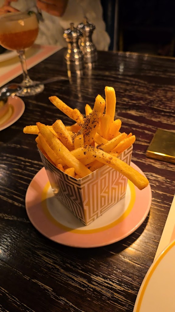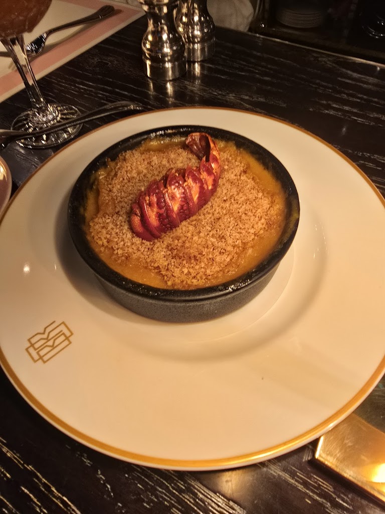 Much awaited experience... Ive been waiting for the opportunity to come to this restaurant for 2 years and yet I think Ill be disappointed. Very beautiful restaurant inside and out, very nice 70s era. The table is quite pretty as are the dishes (too bad to have paper placemats ..). As for the prices, £30 for 5 ravioli (not even noted on the menu). As well as truffle fries (Mc Cain fries most certainly) with 0.3g of shavings at £9 we are not far from the excess. And finally the dessert, strawberry soufflé, no taste interest too bad. I preferred to list the negative because I admit to being extremely disappointed... despite the excessive price of the ravioli they were DELICIOUS, as for the lobster mc and cheese which was excellent! And very nice to have brought a small birthday cake for my boyfriend who is celebrating. Very nice and friendly service. I admit to being quite mixed about my experience, so I wont be able to tell you whether I recommend it or not given the prices. I think you have to choose carefully what you take.