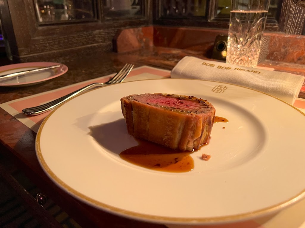 We had a great holiday dinner at Bob Bob Ricard as I’m a sucker whenever beef Wellington is on a menu. Very friendly greeting and loved the all booth dining room. Waiter helped us narrow down our wine choice and the food was outstanding. We had the caviar and tuna tartare followed by beef Wellington and mashed potatoes. Very fun evening.