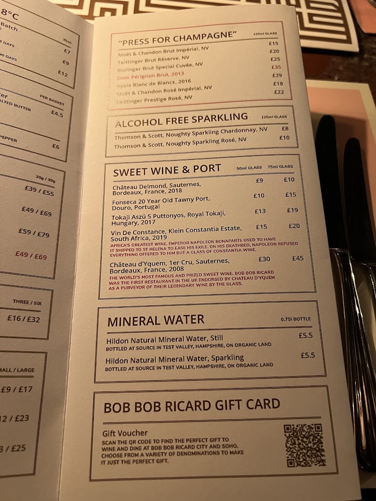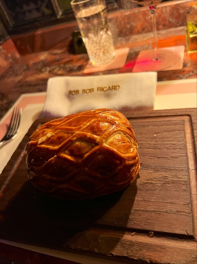 This was hands down the BEST meal I have ever had and I am so happy that I chose Bob Bob Ricard for my Birthday dinner. I traveled from the USA and found this restaurant online (I booked one month in advance). I ordered a dirty vodka martini (which was exquisitely made) and enjoyed the Scallop, Lobster & Shrimp Pelmeni as an appetizer which was divine. It only came with 3 dumplings which was slightly disappointing but the taste made up for it. For my main course, I had the Beef Wellington which I cannot recommend enough. It was flaky, the meat was perfectly cooked, and it was an overall a phenomenal meal. The staff was kind enough to bring me a complimentary birthday dessert which was divine. I strongly recommend that you press the Champagne button at least once as it is such a unique experience. Overall, the ambiance, the service, and the food is worth the price point and I would absolutely return to Bob Bob Ricard Soho. If youre in the area and looking for a nice meal that will exceed expectations, I would strongly recommend booking a reservation here.