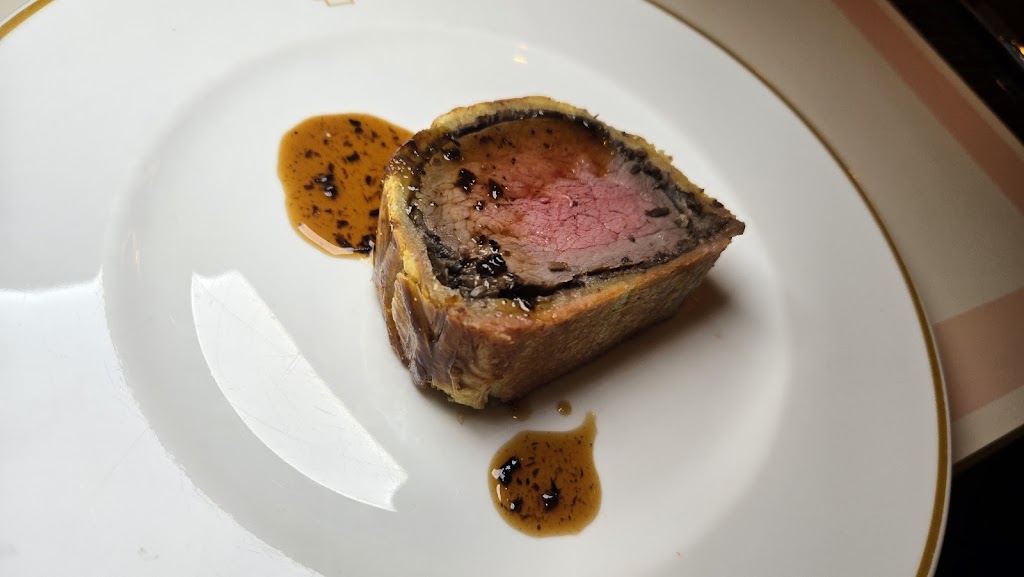 Enjoyed the beef wellington, beef was done nicely and the pastry was good. The dessert was presented beautifully and was a great end to the meal. The interior is lovely and service was good.
