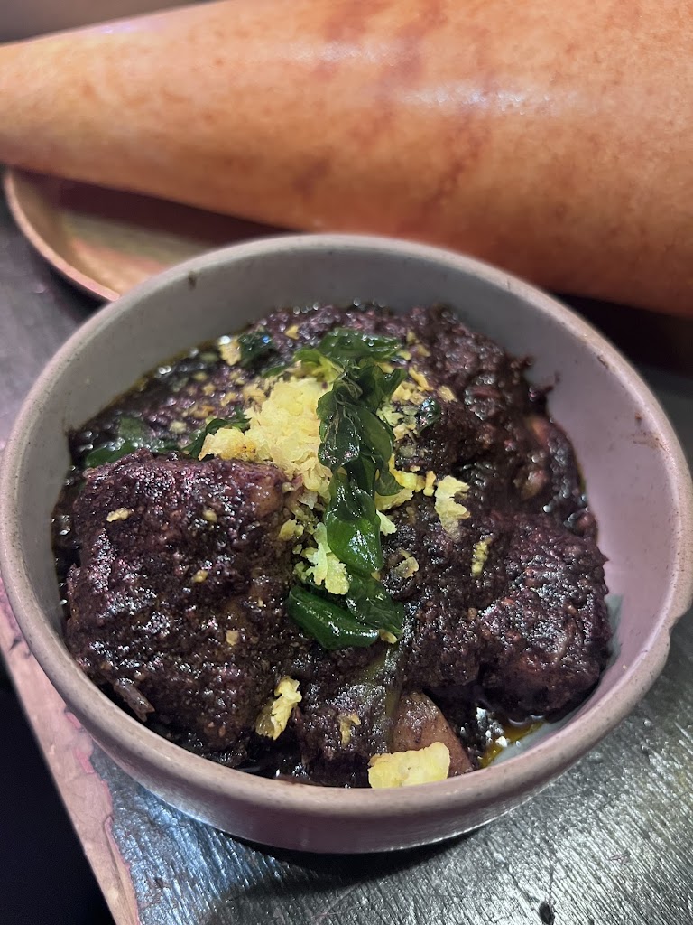 We ordered hoppers, kothu, black pork and the condiments and drinks. The hoppers the middle was nice the sides have to be thin and crispy, the sides were bit thicker. Kothu was nice small portion for the price. Overall good, nothing spevial.