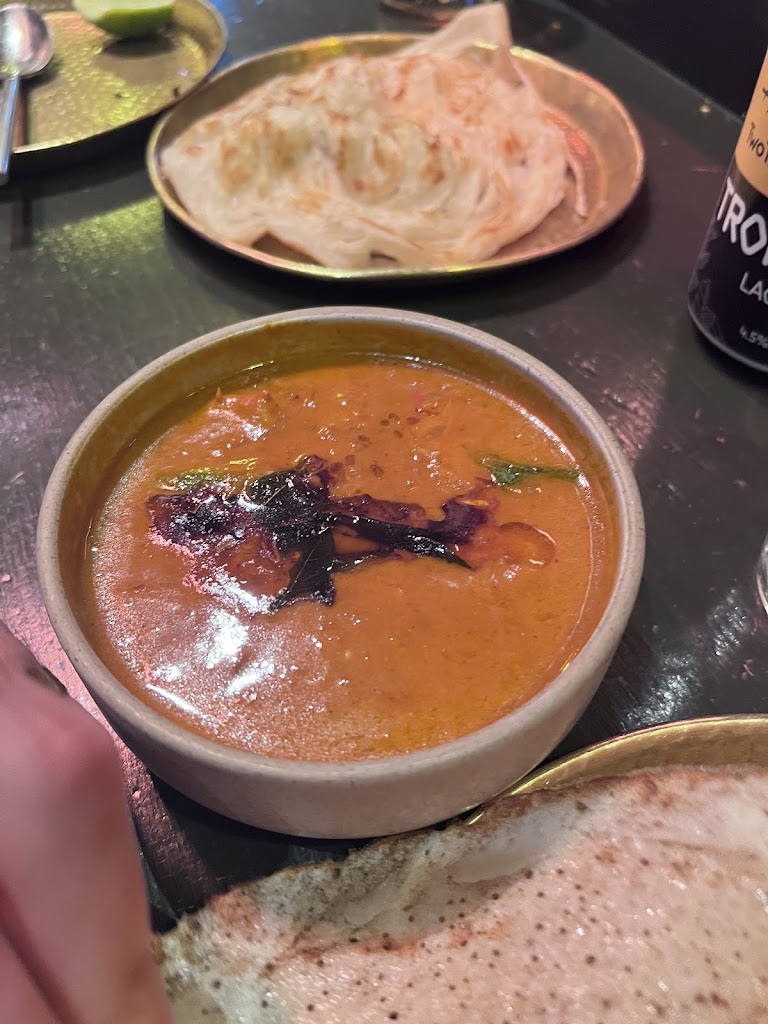 Surprised our friend with a birthday dinner here and we had the best time. The actual restaurant itself was gorgeous and moody. Every dish we ordered was packed with flavour and the hoppers were perfectly made! We only wish we could order more. The staff were very lovely. The one thing I would note is that the booths are quite small for four people. We squished in tight and still had a leg hanging off the side. Quite uncomfortable for the duration of dinner but not a big deal at all.