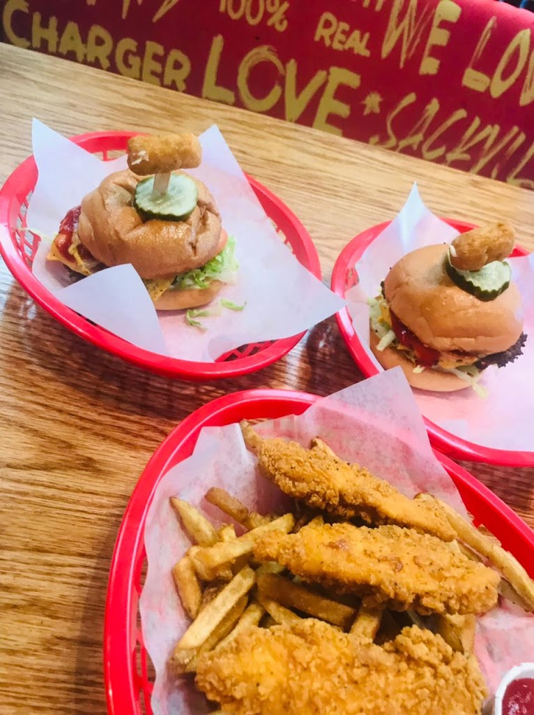 Our first time. I had the charger burger and my wife had the cheeseburger combo. Very nice and fresh. We Highly recommend Charger Burger in Sackville Drive. There were vegetarian options on the menu as well. Plenty of parking as it s in a plaza.