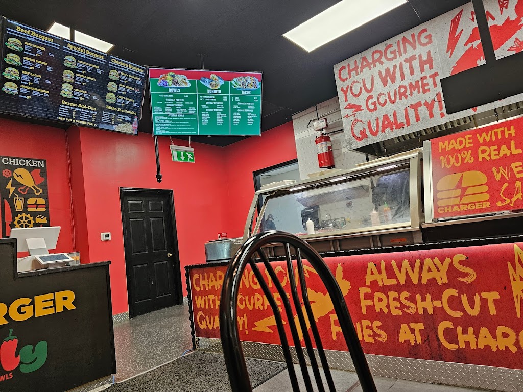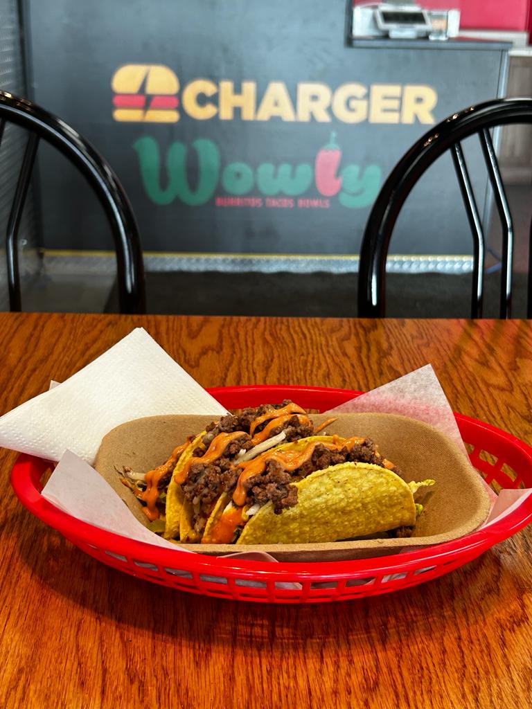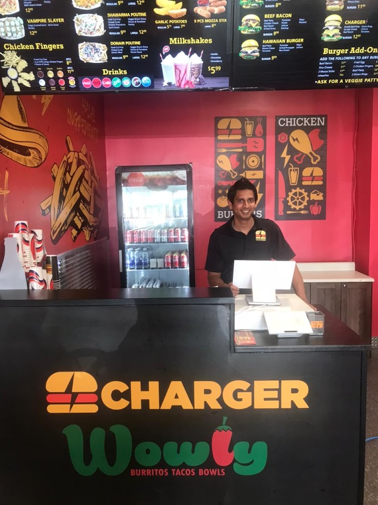 charger gourmet burgers and poutine & Wowly Burrito , taco, bowls , halal