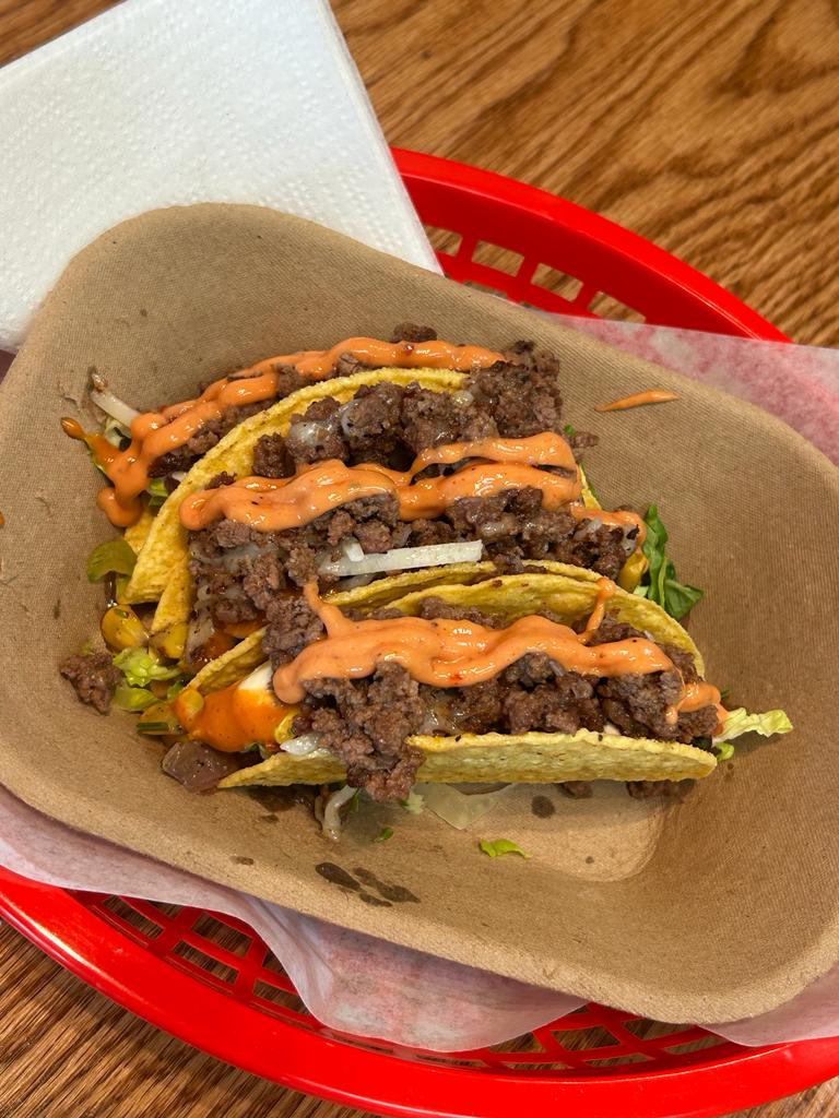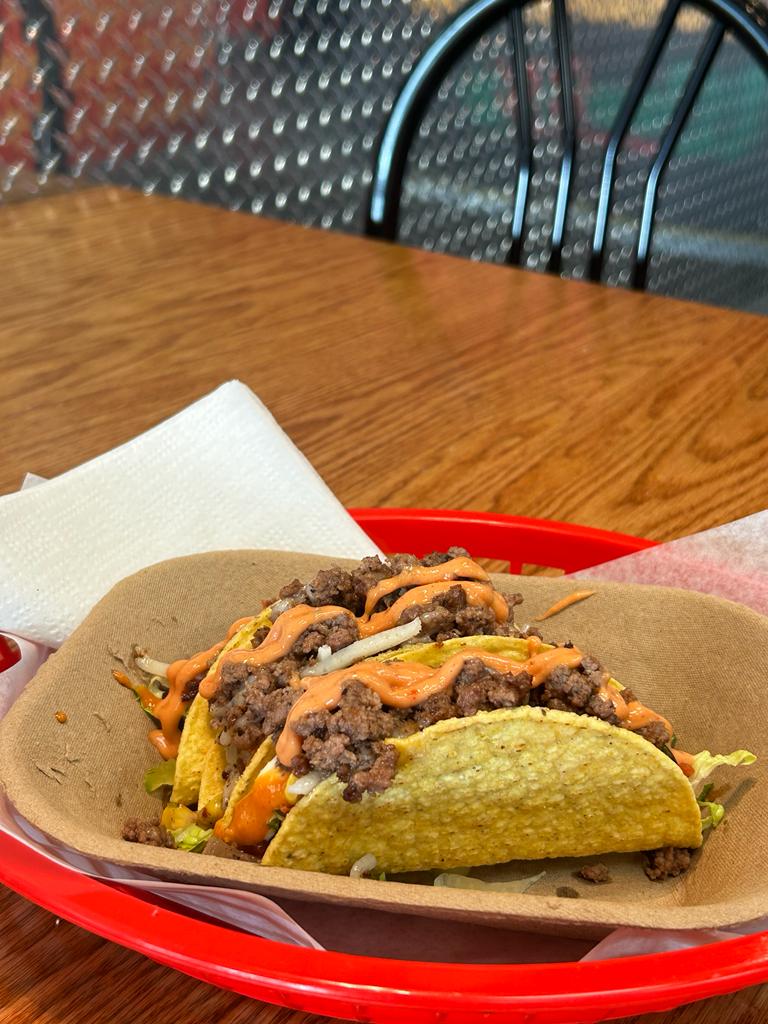 Love there taco fresh cooked ground beef while waiting for my taco enjoying there completely soup which is delicious one of the best lentil soup i had in a very long time