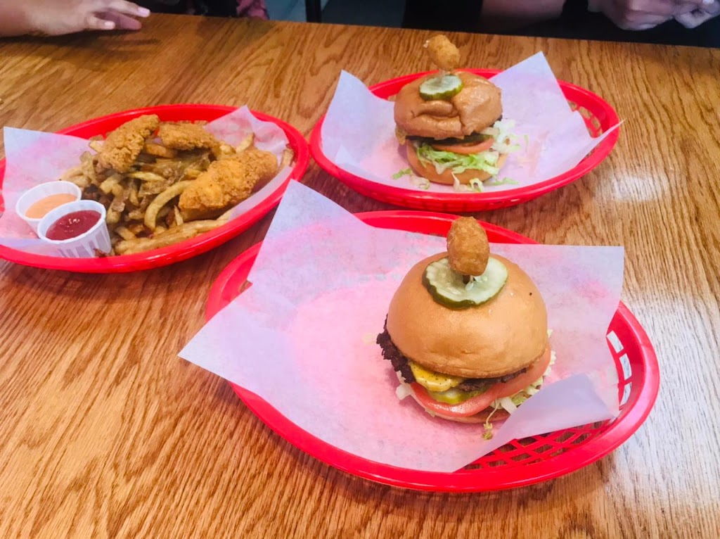 The burgers were delicious and HUGE! My kids each got one burger and an order of fries to share and they couldn t finish it all! I ordered the three chicken tacos and they were amazing! You get to pick your toppings and it was all fresh and made to order. The service was excellent, food was brought to our table and everyone working was really nice. We will be back!