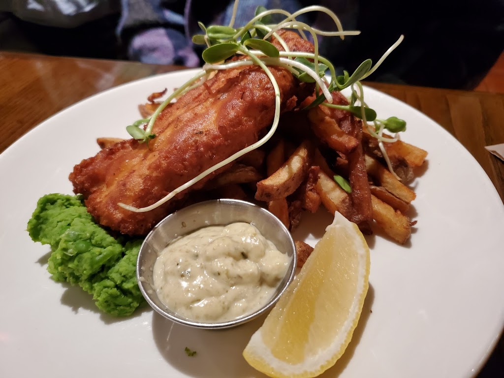 Phew. I was served fishn chips in pieces, which was visibly missing a part - there was breading on only one side, and the oil had penetrated the dried flesh of the fish. Also, adding thyme to green pea puree gives a frankly unpleasant mix of flavors, and the tartar sauce is tasteless. Finally, the waitress, although friendly, seemed more busy chatting with a friend at the counter than ensuring that customers lacked nothing. Although the place was almost empty, we had to ask for everything. In the end, we were charged a special with beer, which we never took, nor were we offered, unfortunately.