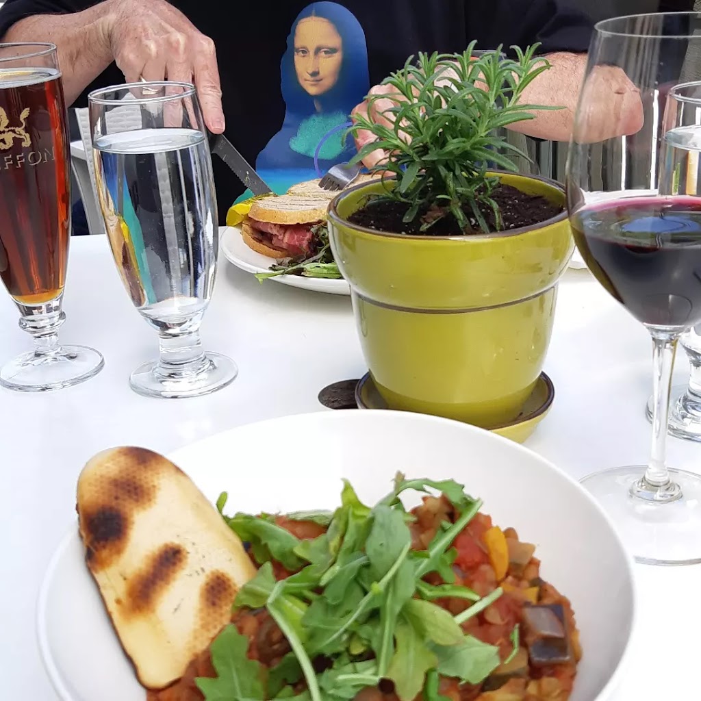 We had a lovely lunch outside. Wonderful service and food. On the day we went they had great daily specials which included a small soup and coffee/tea. Leek soup with a fresh roll and butter started lunch off right! The smoked meat sandwich came with delicious pickles, salad and tasty coleslaw. The ratatouille did not disappoint. House red wine and local beer were a nice addition to our meal! 🍷🍺