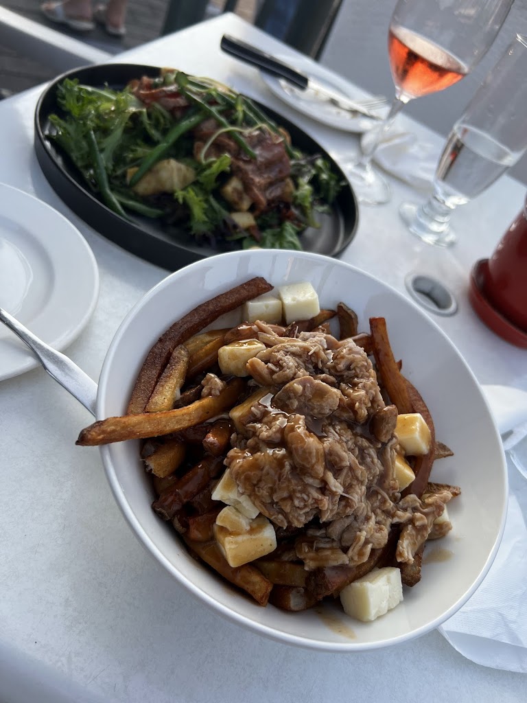 A1 welcome, warm and friendly. A1 service, our waitress was nice and accommodating. I took the burger and I give it a 3, the salad that accompanied it a 4. I took a poutine, however expect a poutine that is out of the standard but very interesting, the sauce was really good, the Cheese chunks are cheddar, so no squish squish cheese. My girlfriend had a really interesting grilled Caesar salad, the chicken really tasted like barbecue.