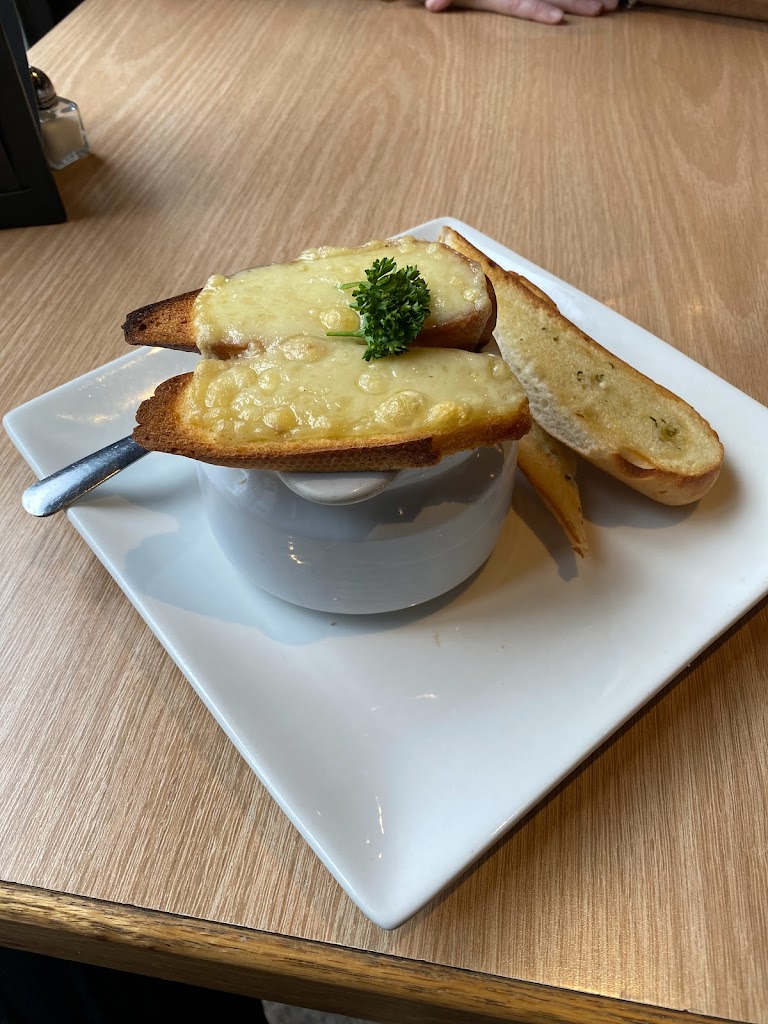 A nice cozy spot in Magog. The service was great and the food was absolutely delicious. The portions are big. I shared a salad, one main course and a soup with my partner. In general nothing to complain about, we had a great experience. The prices are acceptable compared with the portions and the quality of the meals they serve. If you come here I recommend you try their onion soup.!