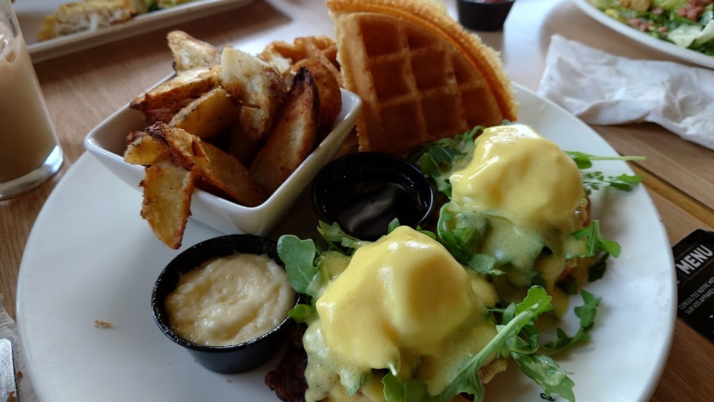 Wow. Fantastic eggs benedict breakfast with waffles. Modern decor with cosy fireplace. Great lattes with perfect rosetta.