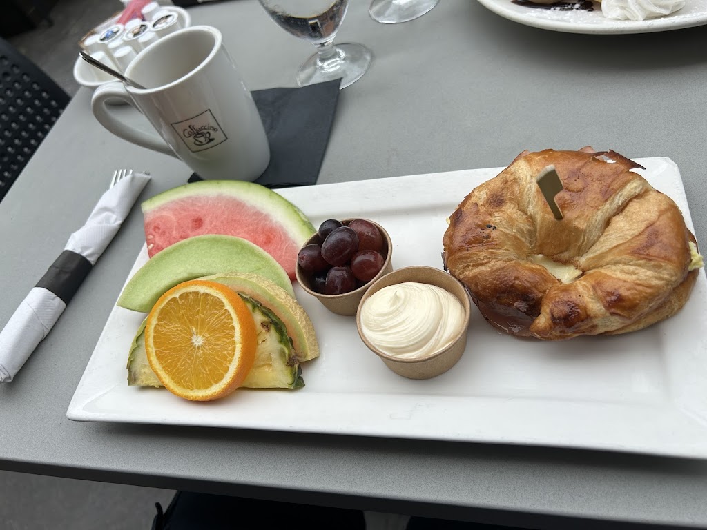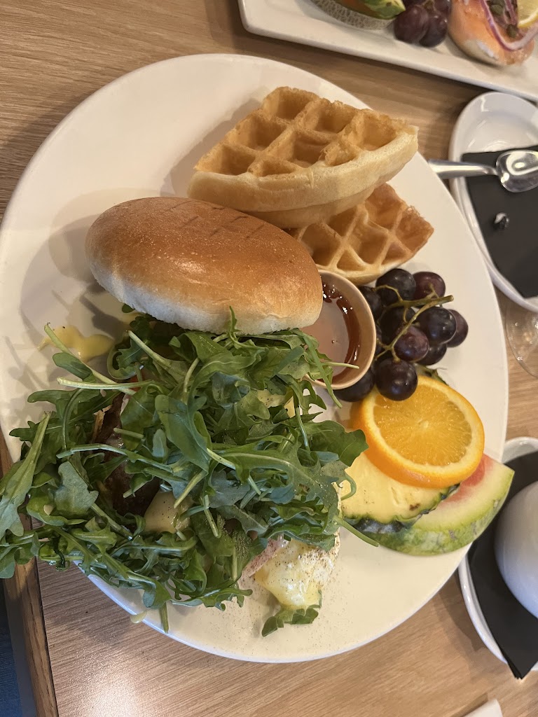 Delicious breakfast, best waffle with fruit and chocolate ever. Bagel with salmon excellent. Staff very nice. Great atmosphere.
