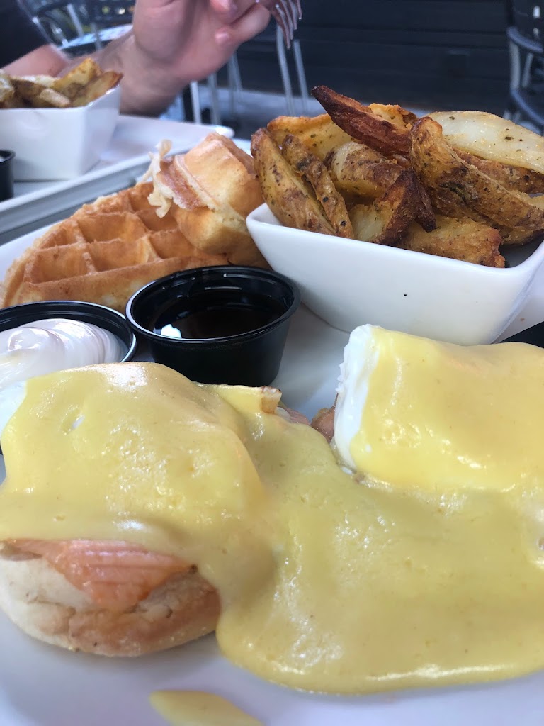 Very good service, lunch that exceeded our expectations! The Benedictines are excellent and what can we say about the waffles! The best yet! The plates are well stocked and everything is tasty. Well come back. THANKS.