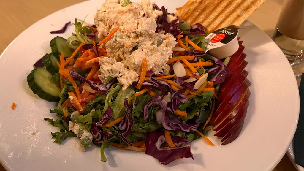 Amazing place! We stayed in the city for one night and wandered in by chance during an evening walk. Half of the establishment is a coffee shop, the other half is a full-fledged restaurant. On the way back, we made a special stop in this city to enjoy food and coffee in this establishment. We ordered coffee for the first time and it was great! Cinnamon ginger latte, carrot cake and mineral water with peach syrup. Yes, this is not fast food, you have to wait, but the result is worth it. The presentation is beyond praise. Even a small chocolate for coffee looked very cute. The girls are creative in their work. The second time was during lunch. Of course, coffee again. Greek salad with chicken fillets on skewers. Very tasty and beautifully decorated. The interior is modern and the design deserves special attention. A very friendly waitress who immediately understood that we needed to switch to English. In other cities in the province of Quebec, this was not always possible, and long-forgotten French had to be remembered. We dream of returning, and many thanks to all the staff for the excellent impression and mood!