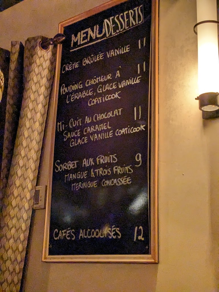 Pleasant setting but very disappointing in the end. The choice is difficult because the map is non-existent. You need good eyesight to read the slates on the walls. The dishes are basic. The mayonnaise shrimp are fried in fritters which is disappointing for a French restaurant. Its also a shame to have sauce everywhere (meat + fries) and you have to love beets (theyre everywhere...) As for the service, it is not up to par... We ordered an escalope and it was a flank steak that arrived. Instead of apologizing and offering to change the dish, the waitress assured that she had of course a flank steak. Finally, she came back to ask us for explanations when she did not get the expected tip. Mind-blowing!!! We almost get yelled at