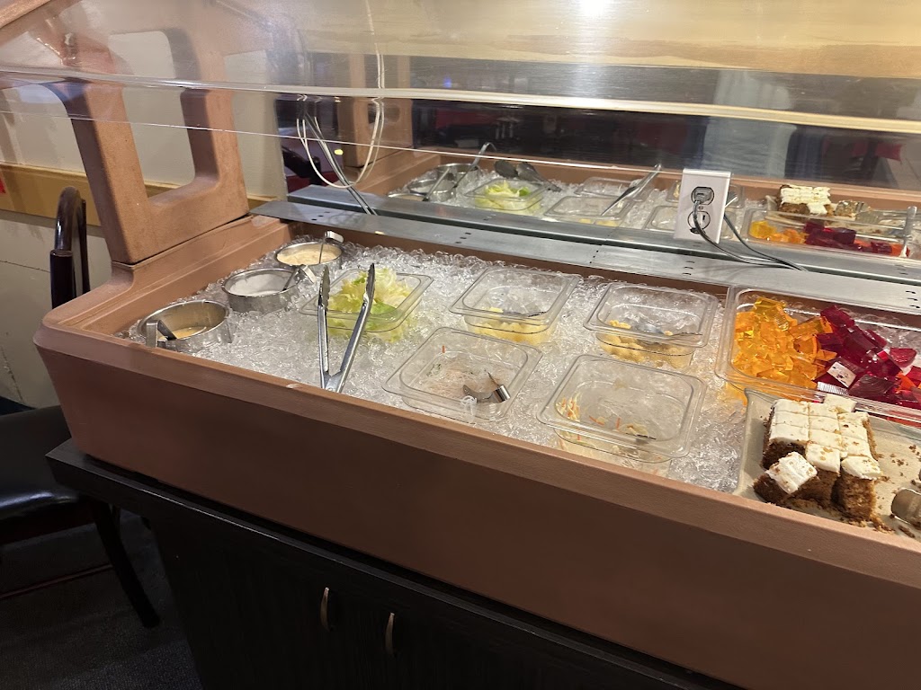 Food was not fresh and didnt taste great. There were dishes that were finished with just the sauce left over etc and they were not bringing anymore out. I dont think its worth the money they are charging. Staff was very friendly and helpful and they did have a good icecream selection.