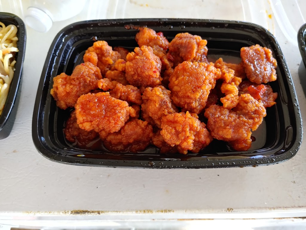 Ordered a combo b from skip, the portion was terrible it was mostly chicken chow main and a few sweet and sour pork It tasted good but I m not I m not impressed Food
