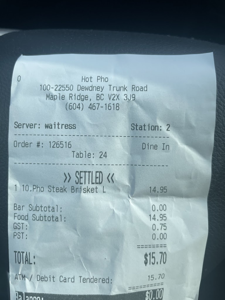 Hot Pho is an alternative PGO place in Maple ridge. I think we only have 2 Vietnamese restaurant in Maple Ridge. Their price is good compared to other Viet Restaurant. Food is good and good portion as well. Would come back here.