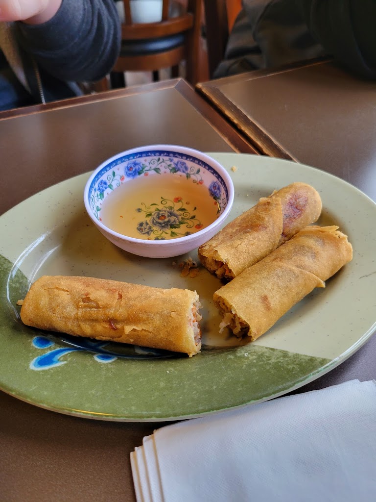The food was alright but I have had better Vietnamese food. It could be that my tastes are different than what they serve. I found the nuoc cham more sour and vinegary than what I usually get. Service was not limited with only 1 staff but overall an alright place to eat. Parking: Many spots are reserved in the small parking lot. Best to find parking elsewhere and walk to the restaurant.