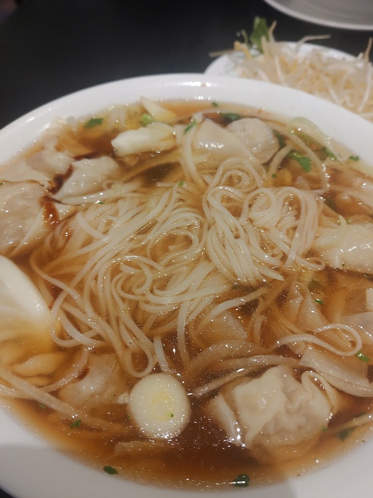 Read a review on a FB page about the Wonton soup so on my lunch break I popped over and grabbed a Wonton Soup (no noodle) and a Shrimp/Pork Salad Roll. Wow the broth flavor is out of this world. The size of the soup was beyond worth the cost! I ordered for takeout so the Wontons and veggie came separate. I couldnt fit all the veggie in at first there was so much broth but got it in there after eating some. The soup was Soo filling I couldnt finish the broth or attempt the salad roll. Took both home at the end of the day and reheated broth while snacking on the salad roll. Both full of flavor! Texture on the peanut sauce was jelly like when I took it home (fridge all day) but flavor was still delicious. Will return for more!