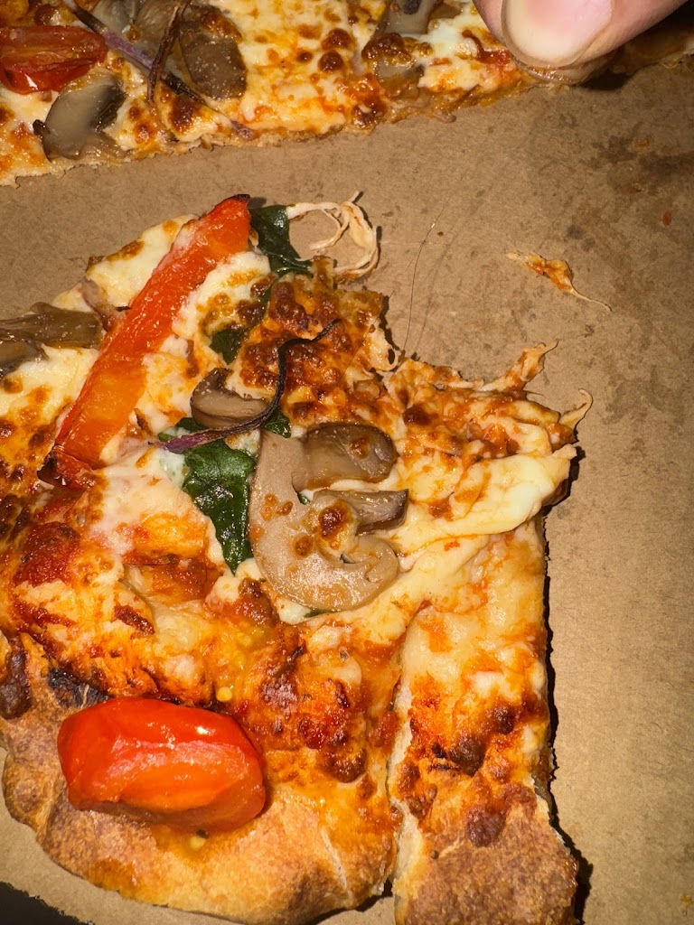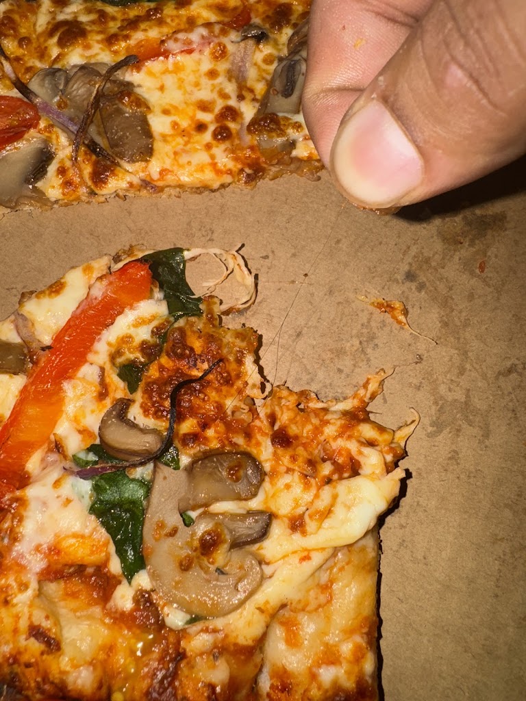 This was genuinely one of the worst pizzas I have ever eaten. It came unevenly cut (looked like a mix and match pizza) the consistency was wet, elasticy, and dry. It was so bad looking my friends laughed at me upon receiving my 2 pizzas. I cannot stress enough how gross this pizza was. Never again #shouldhaveordereddominos