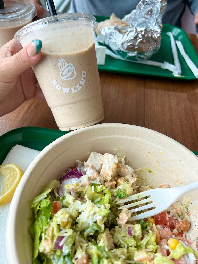 I tried for the first time. Honestly very very delicious chicken burrito with chipotle sauce. Banana berry Smoothie is really delicious too. I highly recommend Bowland.
