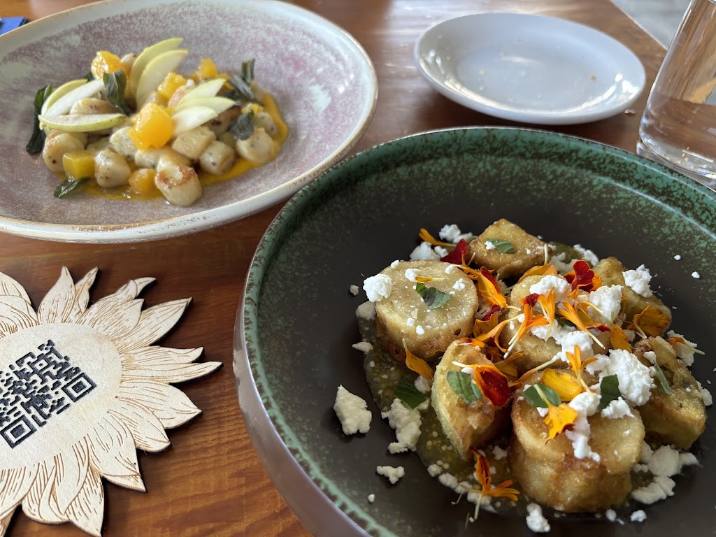 We visited Sunflower Cafe for the first time this evening. What a gem!! That was the best dinner we have had in a long time and was definitely worth every penny. We loved the small plates/sharing aspect. It s a beautiful location with incredible food. Yes, portions are small but it s grown there / local and that is worth it. Such creative, quality dishes. They have a good thing going here! The whole experience is 10/10. Don t skip the bread and cultured butter. So good.