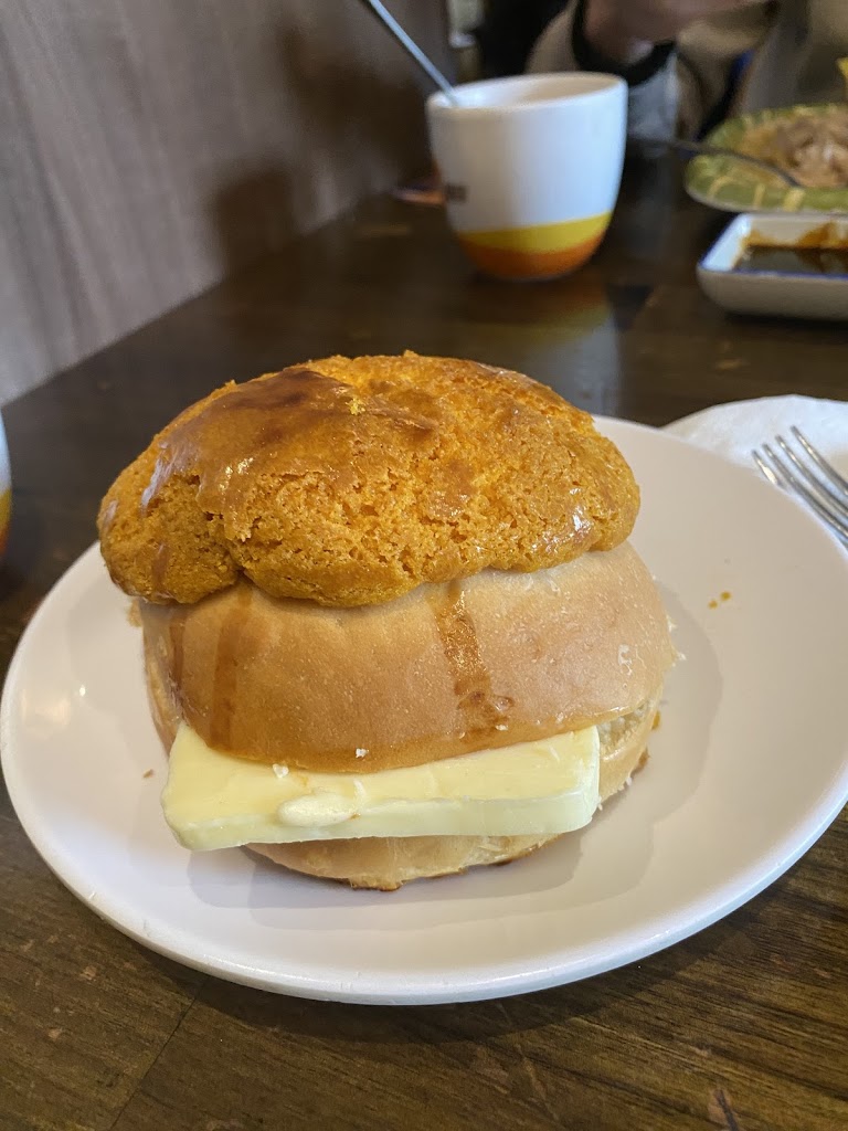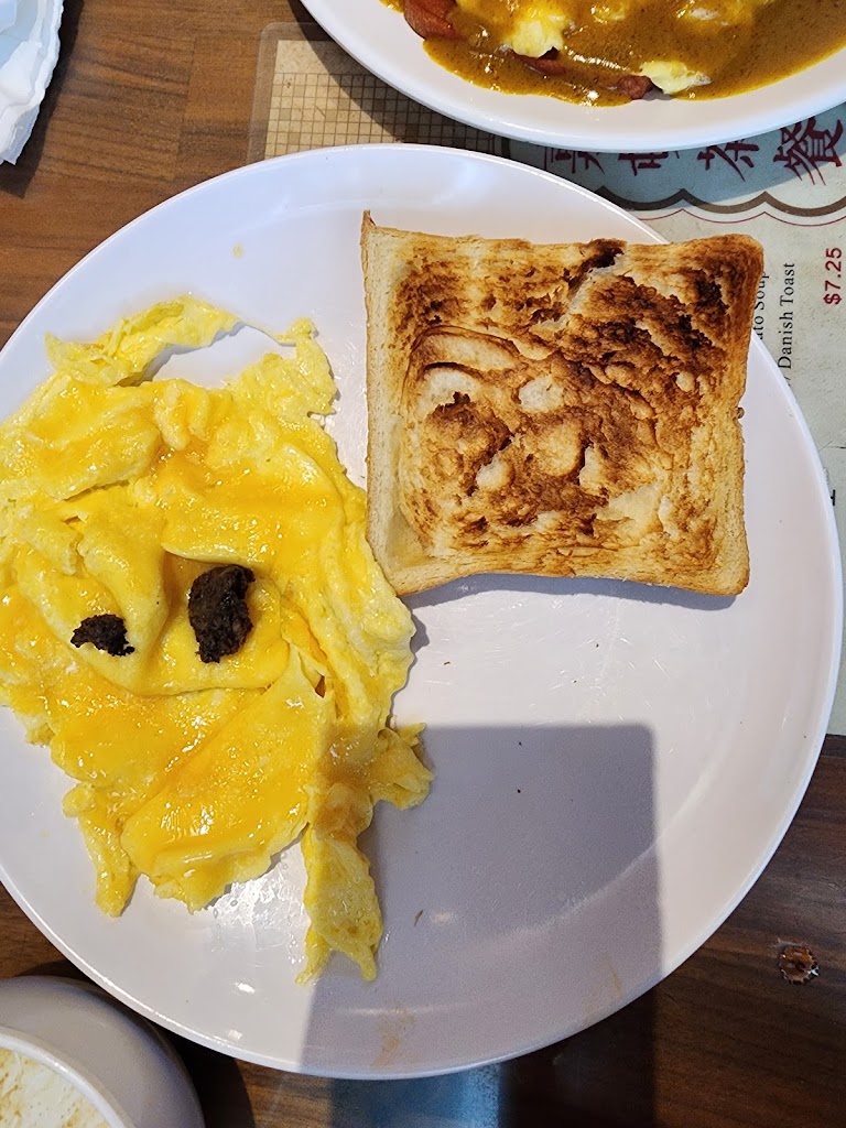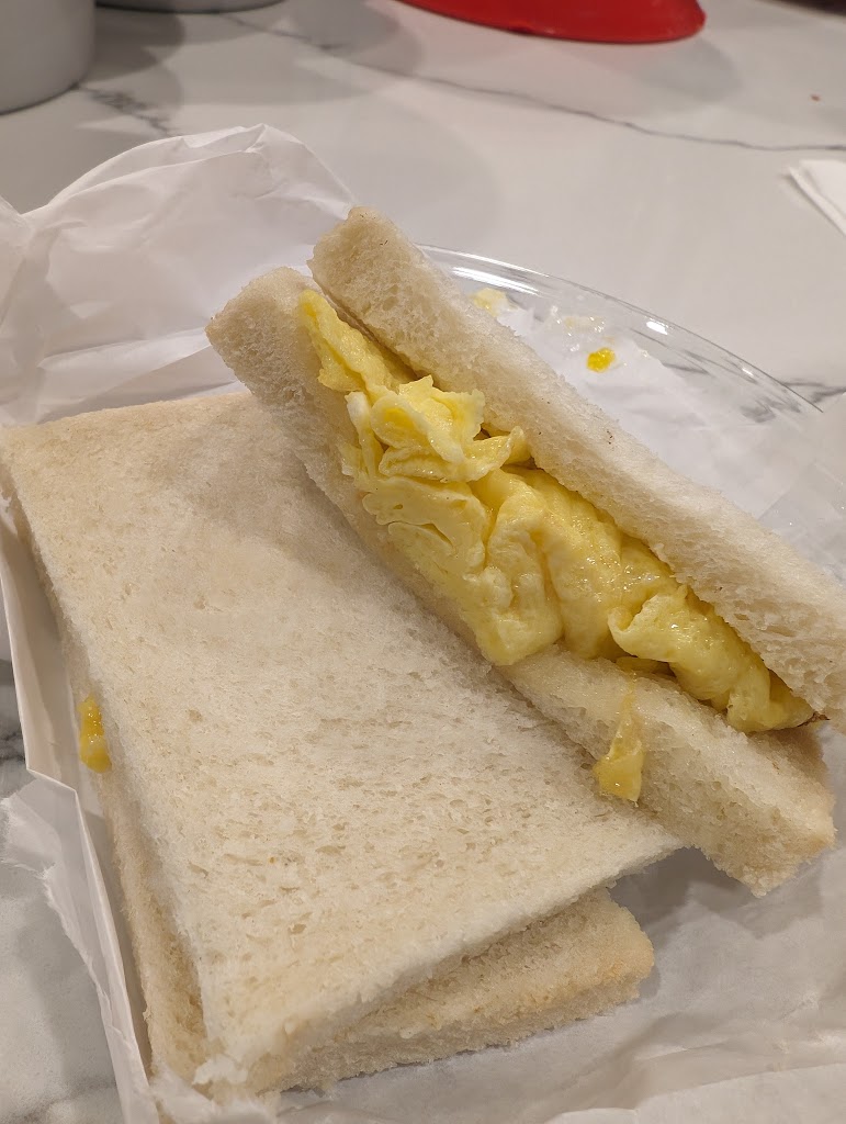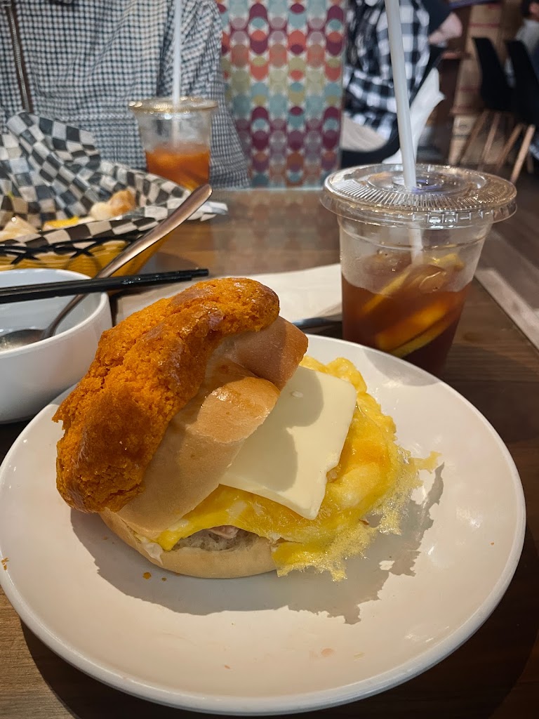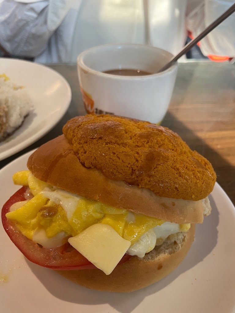 Pineapple oil (Skin is crispy. Dough is soft and waxy Hainan Chicken Rice (The chicken is very tender and tasty. The rice is very fragrant Onion and Ginger Chicken Liquid Toast (I was worried that there would be too much liquid, but as long as I carefully wrap every bite of Western Toast, it will be just right in the end. The Western Toast is fried beautifully, and the outside is thin The layer is a bit bland, and it would be nice to have more flavor. It s very greasy after one portion. Pork Chop Crispy Bun (Pork chop is okay. Bread is average. Sauce is too little. Overall too dry. Swiss chicken wings and cheese noodles (Swiss sauce is not flavorful and not rich enough. Chicken wings are average. Pineapple Bun with Ham, Egg and Tomato (The pineapple bun is still delicious as always, and the eggs are also good. Of course it can t be unpalatable, but I still think it s quite redundant to put so many things in the pineapple bun. Simply use pineapple oil its the best Red Sausage, Ham and Egg Curry Rice (Not bad, but just average, nothing impressive Curry Beef Brisket Bun (The portion is substantial. The beef brisket is very tender and the meat itself is good. The curry tastes sufficient and delicious. The bread is average Onion, ginger and chicken (The noodles don t taste good, not enough ingredients, very bland. The chicken is tender. Overall, it s average. Frozen lemon tea + pineapple oil (feeling stale this time) + company sandwich Satay Beef and Egg Sandwich Hainan Chicken Rice (The rice is still delicious, but the chicken is a bit dry Snack platter (the sausages are delicious, the fish and tofu are too fried, the chicken wings are poor, and the seasoning is average) Western toast way too greasy