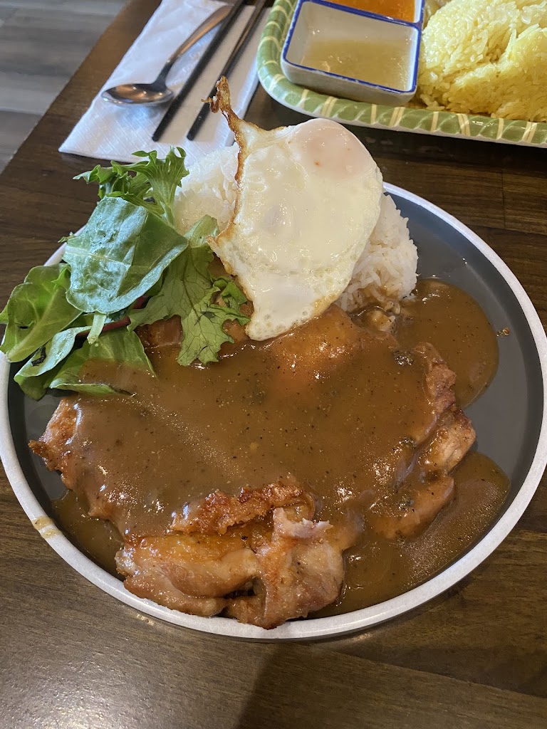 We ordered hinan chicken and Curry beef with rice. The chicken looked like making from chicken quarter, not from whole chicken. The curry beef is very good. We wish the restaurant is bigger.