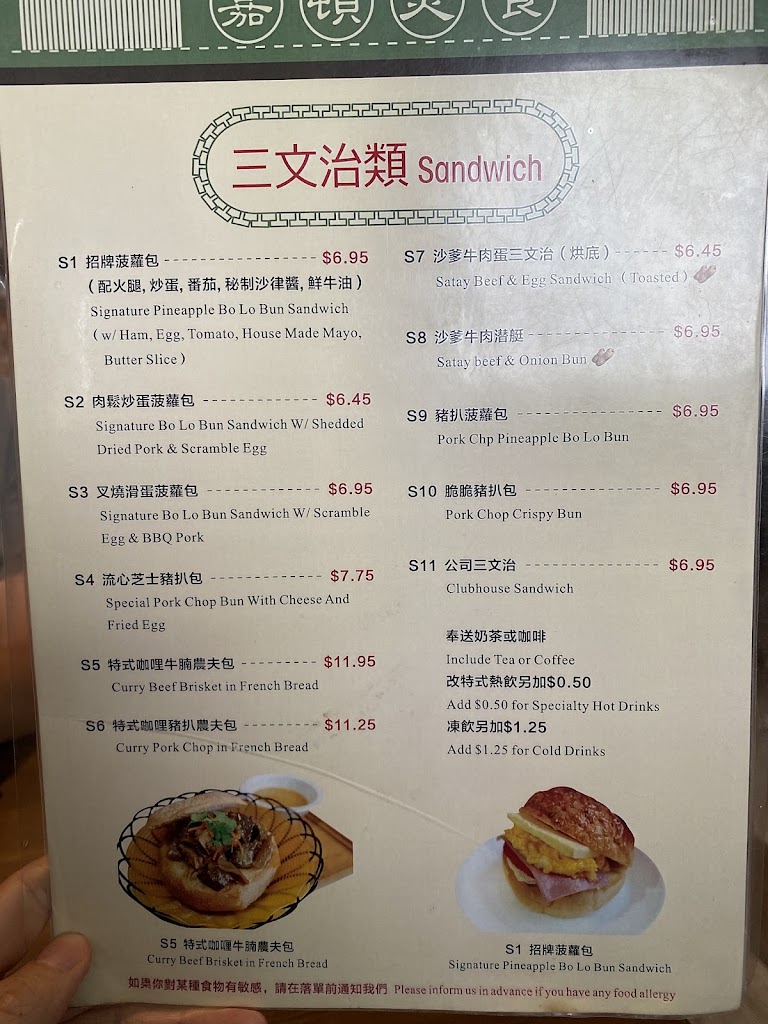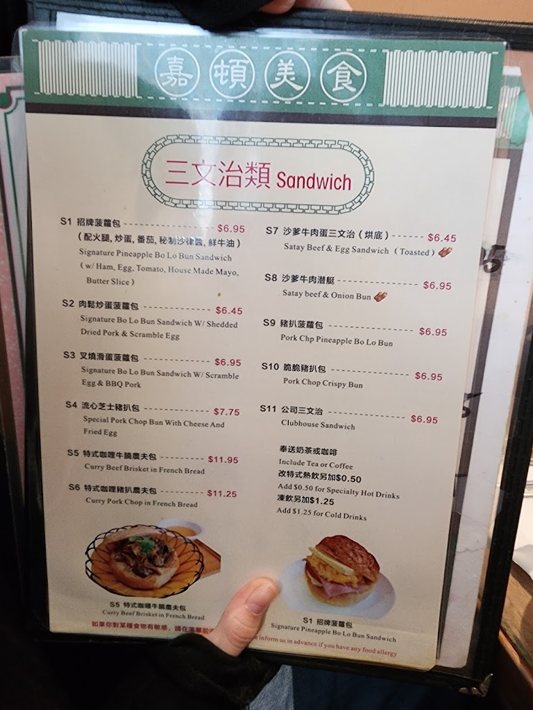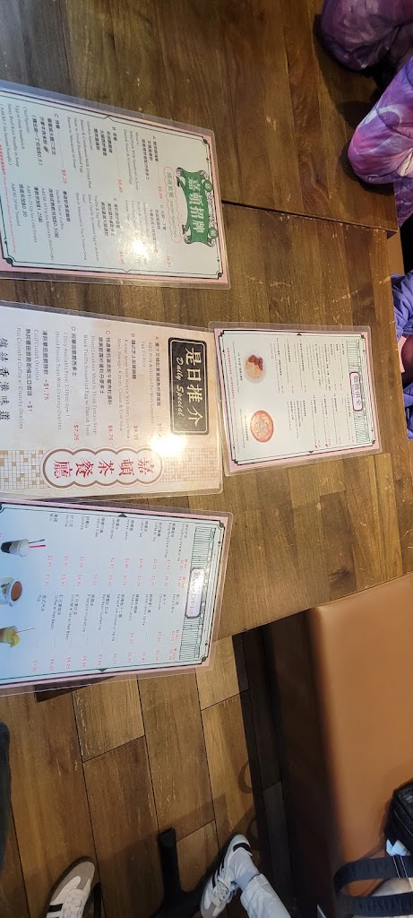 2024 October 3.5 A. $11.49 S3 $7.25 Still pretty good. Pricewise still very competitive. Was a bit disappointed with the BBQ pork this time as it lacked flavors.. almost looked store bought. November 2021. 4 Continues to be a great option for HK style dishes. New menu options recently added. Decently priced. The BBQ pork with beef omelet with rice was very good. The egg was done well and the beef and pork were tender. The Baked pork chop and chicken steak with black pepper on tomato sauce on fried rice was also good with melted cheese on top. With a drink under $10 its a great deal. November 2020. 4 The molten salted duck egg sandwich was great. The milk tea was good too. Their appetizer was good with the exception of the siu mai which was so so.. the fish paste wasnt springy enough. The place itself is very small. About 7 tables or about 25 seats. Price was ok. Worth going for a visit.