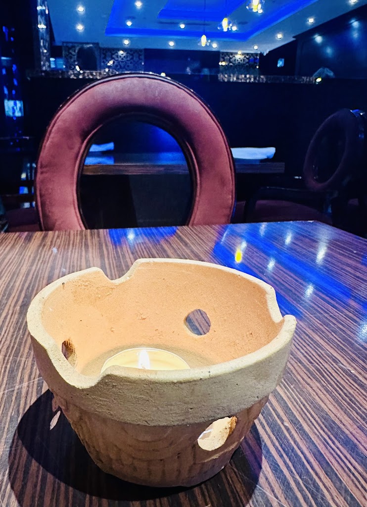 An innovative approach to serving basic Indian cuisine doesnt need dark and dull interior. As a fine dining restaurant, the restaurant disappointed us on various occasions. Although the soup was nice, but the instructions of serving noodles on the side werent followed. The sizzling platter of appetizers just had 2 pieces each of the food listed, making it not enough for 4 of us share. Lastly the ambience is expected to be niche like many of their counter parts such as Tamarind or Adrak, however it wasnt. Low lighting, just a small mushroom on the table, failing to illuminate the small table, not able to see what being served, or eaten. The cherry on the cake was the flashing Disco lights that they start after a certain point in night, just flashing around and hitting your eyes. Overall, not recommended for a date or a special occasion.