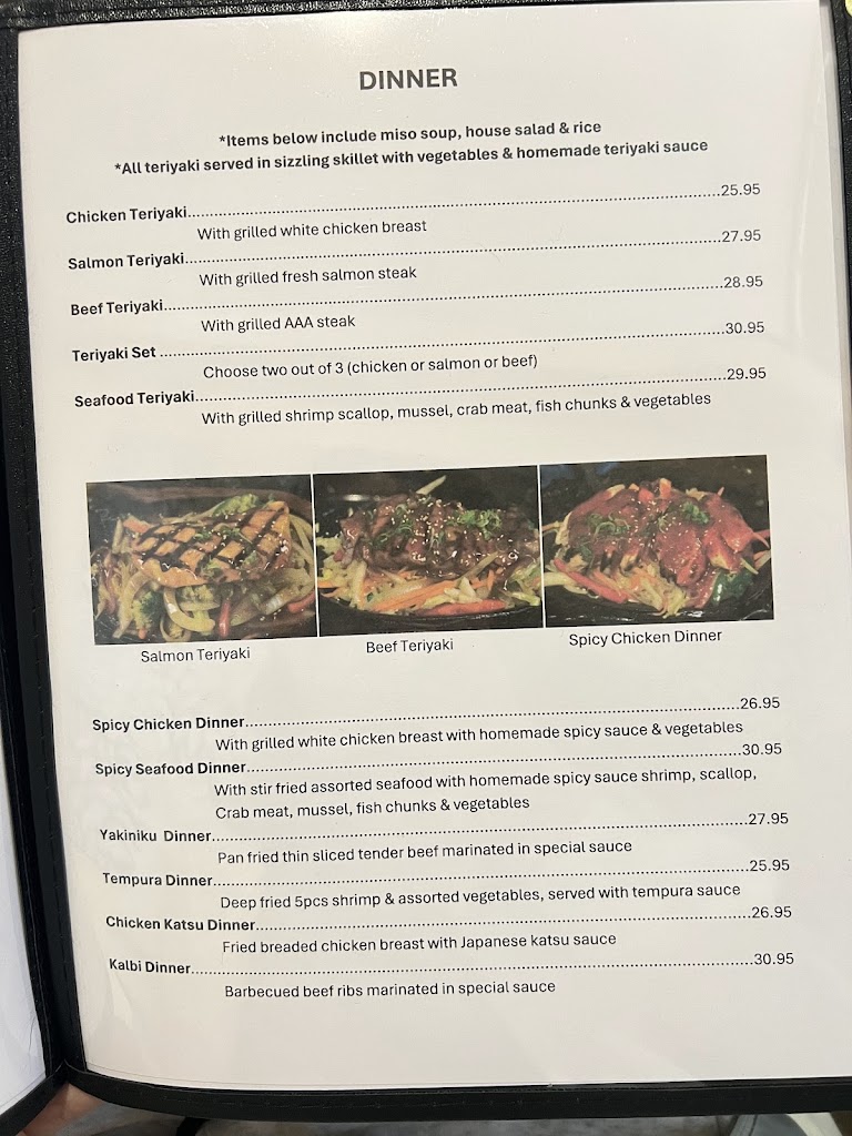 Sashimi was not fresh would not recommend raw food there. The chef meals include fruits as per menu, but the waitress and waiter both argued it was for dinner only. When we showed them what it said on menu, the waitress said if you want fruits we can give you as if we are begging. They should really learn to treat customers with respect. Really bad experience.