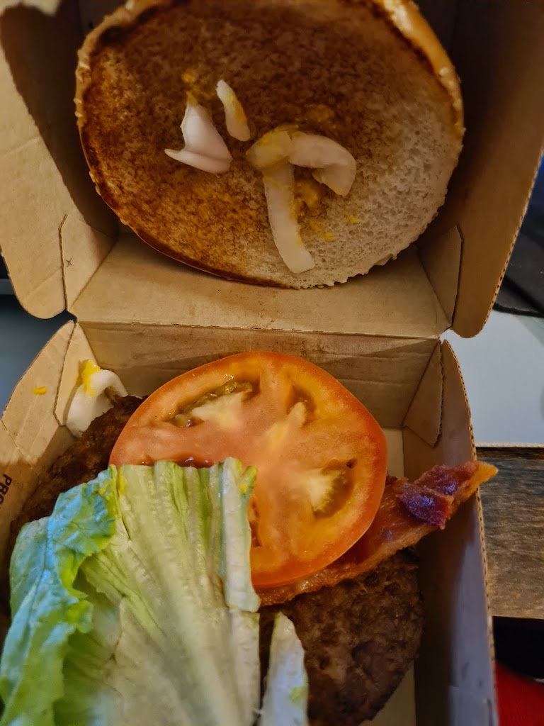 A loyal customer for 15 years. I go to McDonalds regularly but since 8 p.m. this evening I know how to finish. I order a chicken bacon warp as a trio, I receive my order quite quickly but the problem is that the bacon in the warp was still frozen. To be honest, that disappointed me... I know that McDonalds doesnt have a very good reputation these days but that didnt stop me from coming to get something to eat. Now its over.
