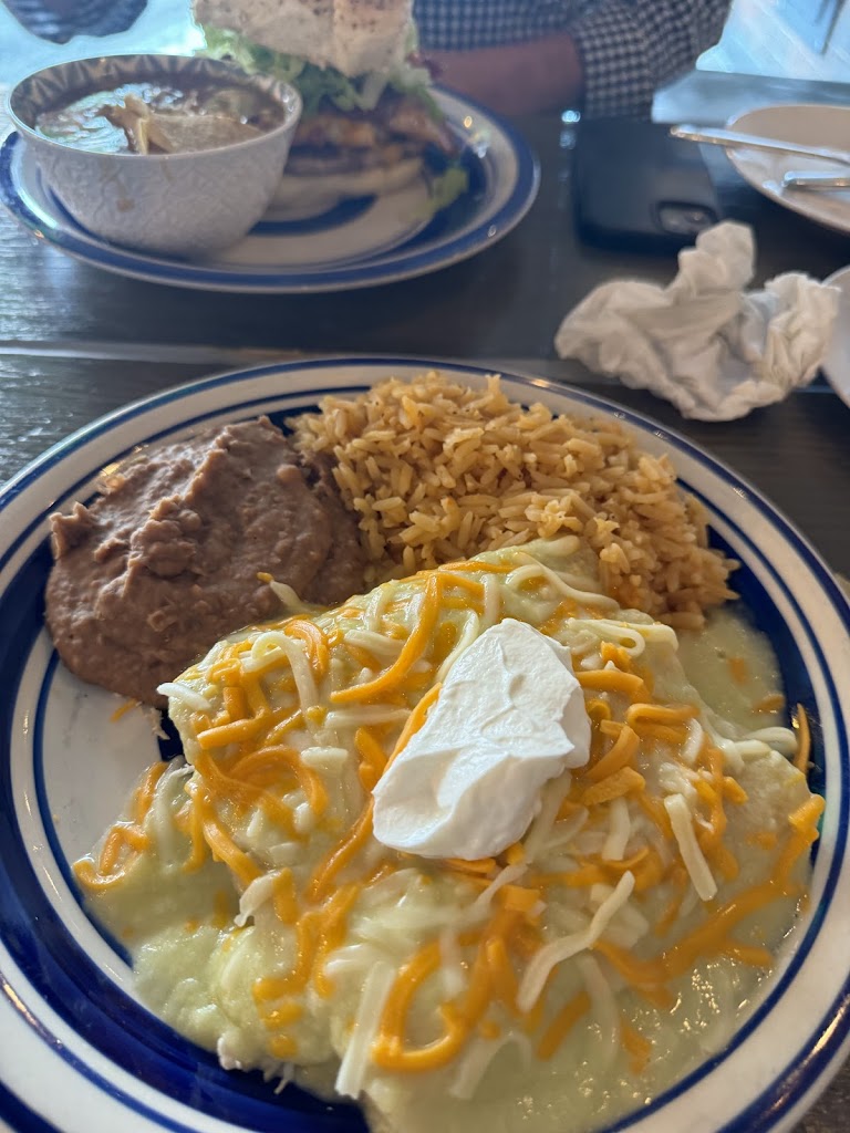 First time getting food here yesterday and it s one of the best Mexican dishes I ve had! :) I got the enchiladas with refried beans on the side. Everything was delicious and perfectly seasoned! The chicken in the enchilada was a little dry and didn t have much taste. But the delicious green salsa on top defiantly helped with that, and the corn tortillas were soooo good. I loved pretty much all of it, even my little churro which was crispy on the outside and soft on the inside. I will defiantly be ordering again. Thank you for the delicious food!
