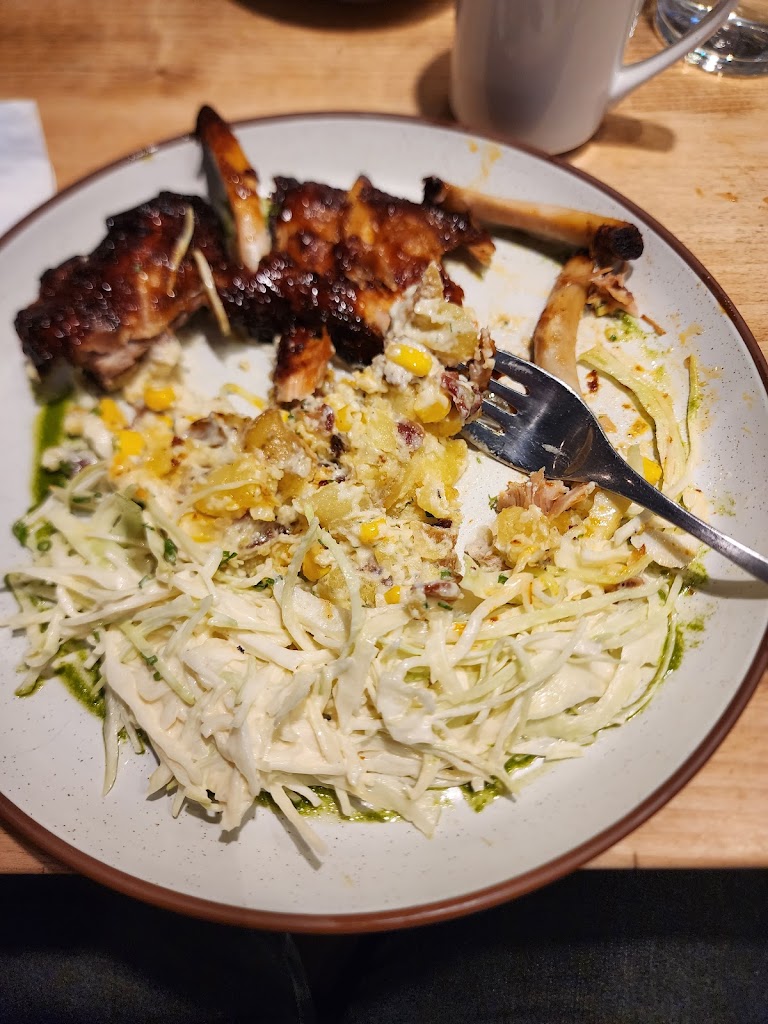 Had the sante fe chicken salad. Was great. Chicken cooked perfectly. Service was fantastic!