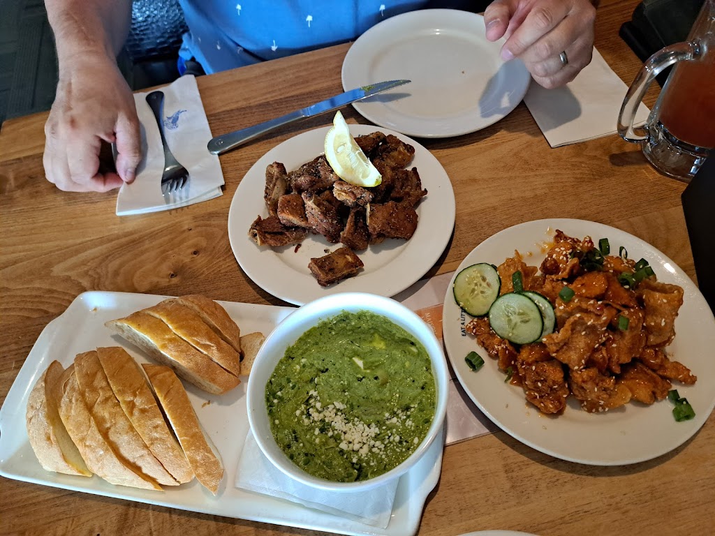 Great lunch today! Everyone enjoyed their meals and our server was great! The only thing we didn't enjoy was the appetizer pan bread. It seemed like it was from the day before (stale) and there was a thick coating of flour on the bottom, but everything else was very tasty. Restaurant wasn't busy at all and the food came out quick.