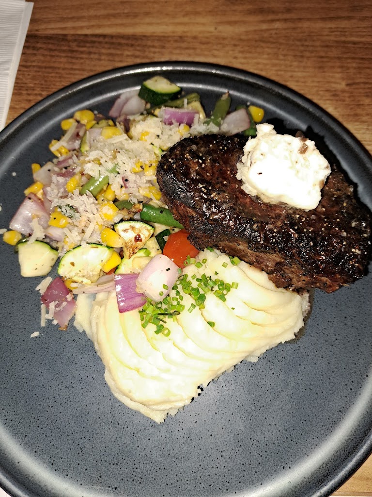 Drinks were amazing, service was amazing . Everything but the steaks were amazing. The filet was super thin and bland... had zero flavour.... I had to ask for salt. We will definitely come again but for something else!!