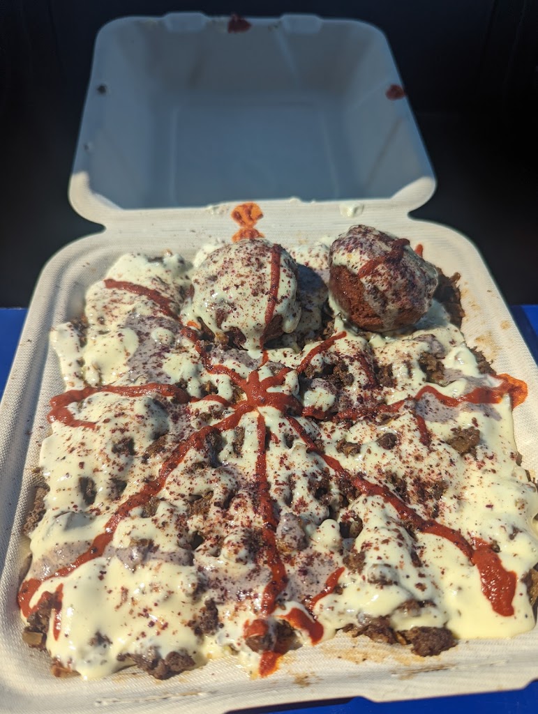 We tried some for lunch today- was my first time trying. We had the fries topped with chicken, beef, cheese and garlic sauce. It was absolutely delicious and a hit my taste buds right!! Yum yum will try again for sure! Thanks for bringing it in for us to try! Keep up the great work!