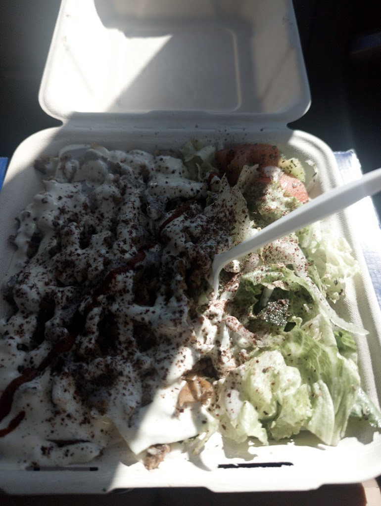 This place is very good. The workers are nice and the lamb shawarma is so good! The only critique is the worker taking my order talked me out of getting medium heat. I am white and maybe that has something to do with it so I had the little heat. Meh. Didn’t feel anything. I only had the heat from the peppers and it was nothing. Very good food and I ate all of it. For four people eating here it was surprisingly cheap! All and all don’t let them talk you out of the spice!