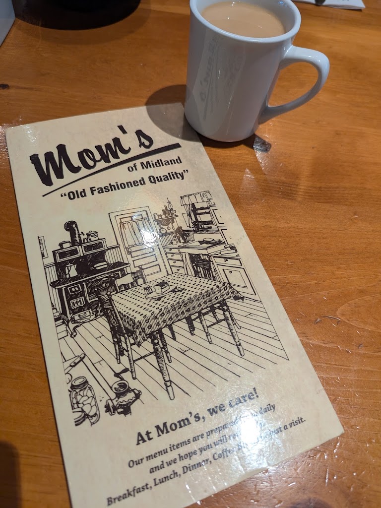 My wife and I were in Midland and I grabbed take out breakfast for us at Moms and it was fantastic. We went back for dinner and it was even better. Amazing food, great staff, very clean. Anyone visiting Midland should definitely stop by for a wonderful experience.