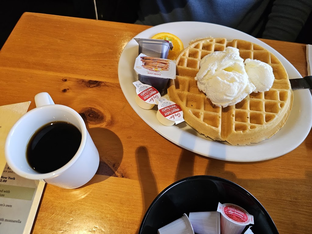 Great spot for a comfortable meal.. the atmosphere was nice.. our waitress so genuine and polite. We stopped in for brunch.. breakfast served all day so we had bacon eggs and the biggest pancakes Ive seen.. they were delicious light and fluffy... the coffee was exceptionally good .. Highly recommended Wheelchair accessibility: A few accessible spots